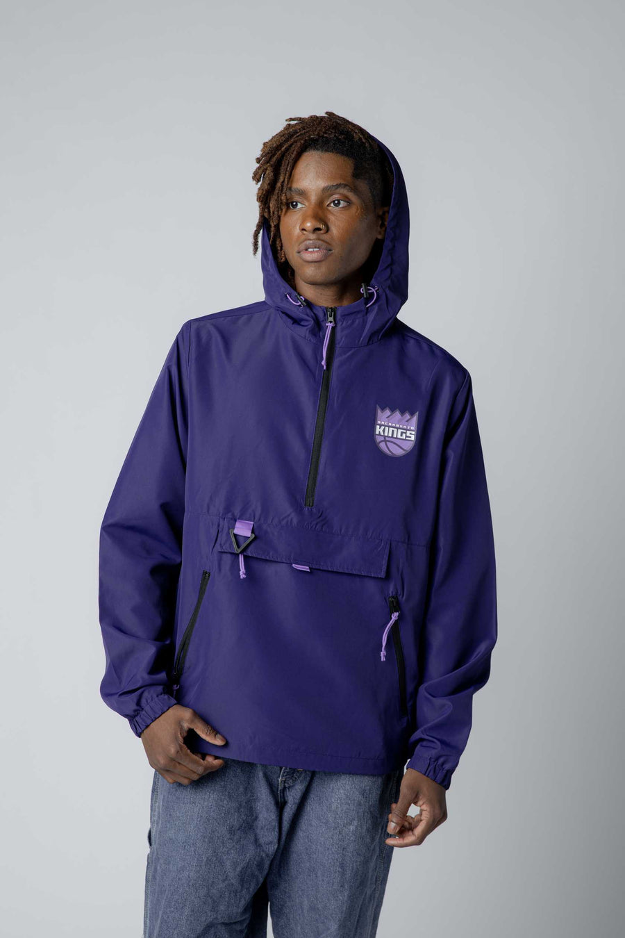 The 2025-26 City Edition Compete 1/4 Zip Jacket brings Sacramento pride to every layer. Crafted in striking purple, this piece features the iconic Sacramento arc embroidered across the back—a bold statement of team loyalty. The quarter-zip design offers versatile layering for game day or everyday wear, combining performance comfort with unmistakable Kings identity. Perfect for fans who want to rep the city in style.