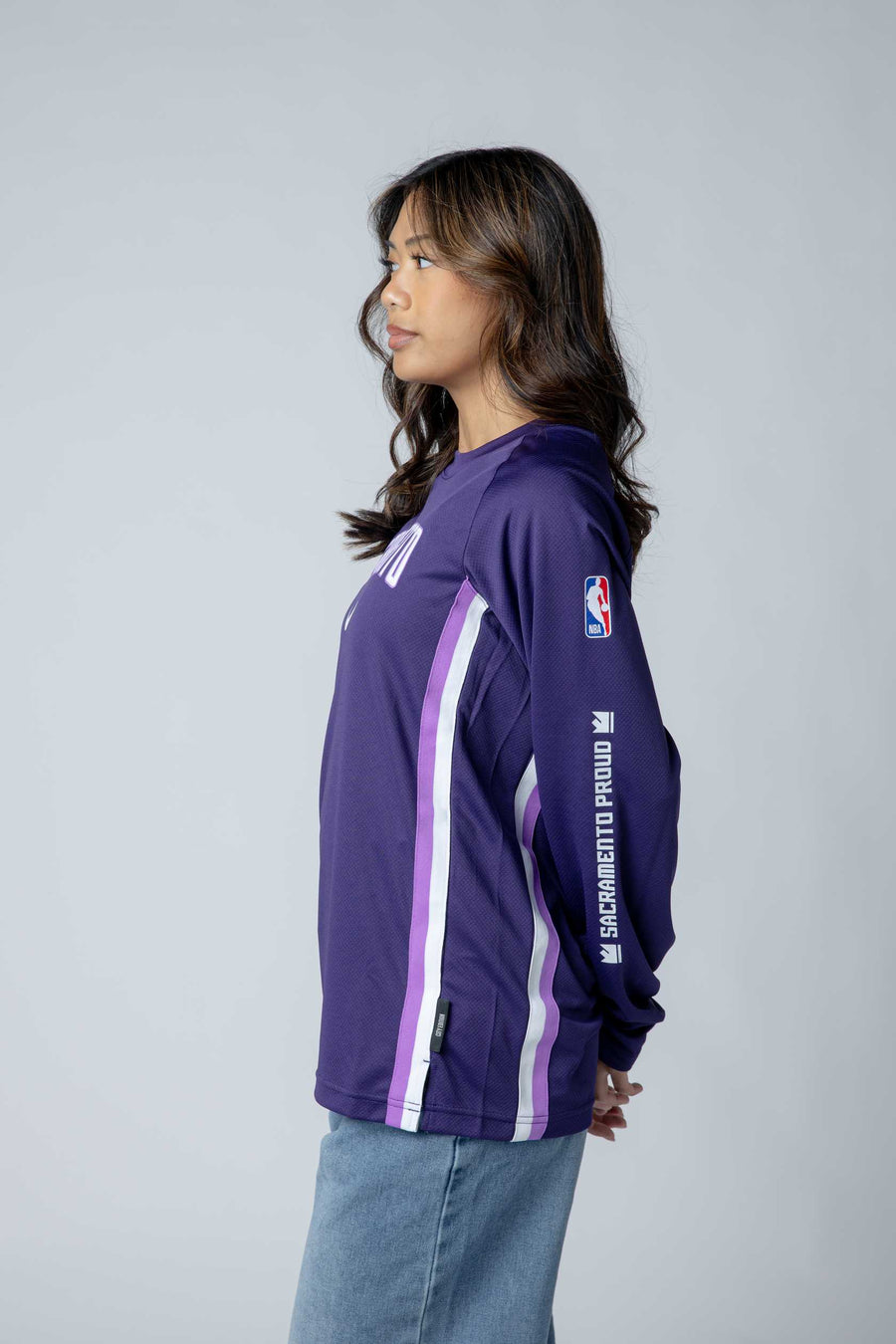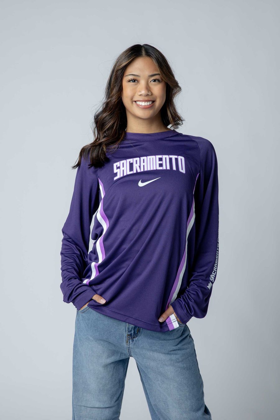 Nike Dri-Fit Long Sleeve Game Top featuring the exclusive 2025-26 City Edition "Sacramento" graphic on the front chest. Built with moisture-wicking Dri-Fit technology to keep you dry and comfortable whether you're courtside or repping the Kings all day. The bold City Edition design celebrates Sacramento's identity with premium print quality that holds up wash after wash. Perfect for fans who want authentic team gear with performance-driven comfort.