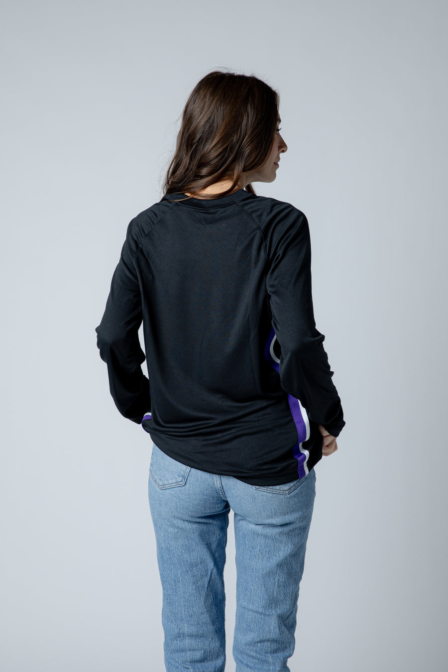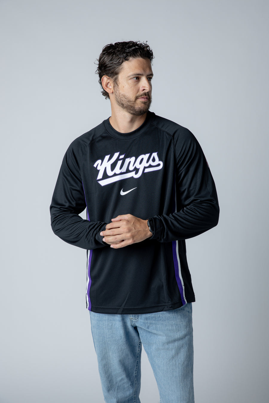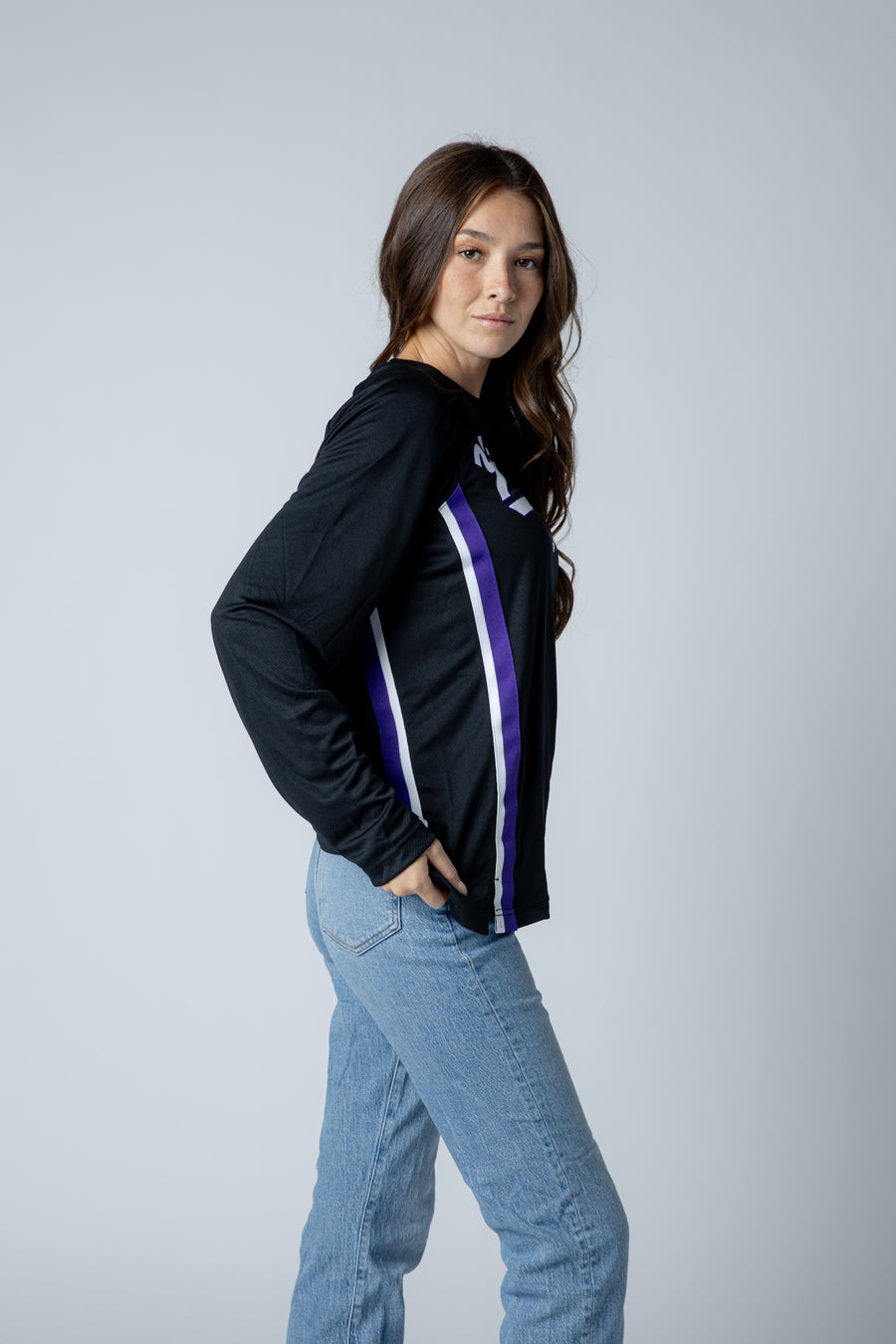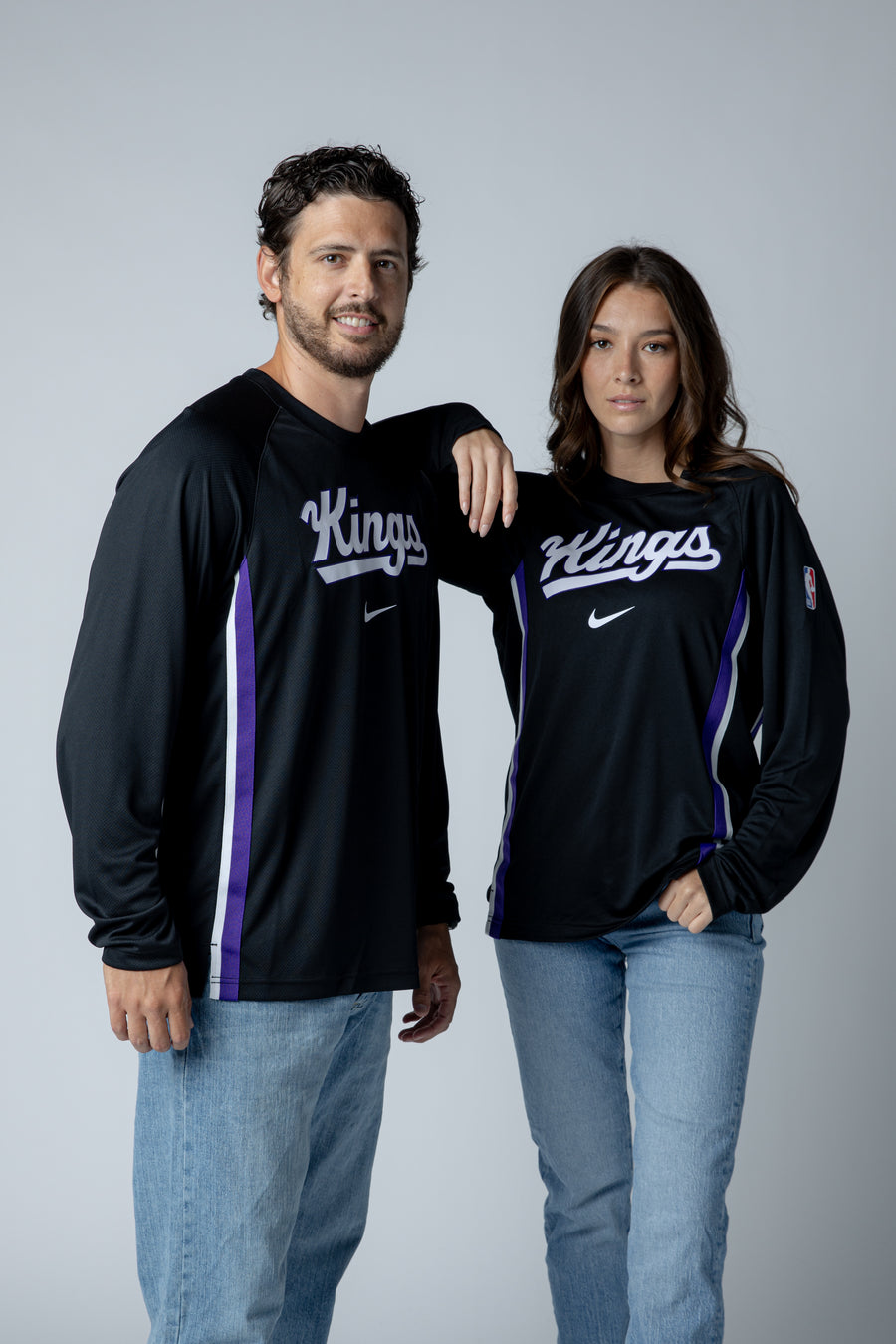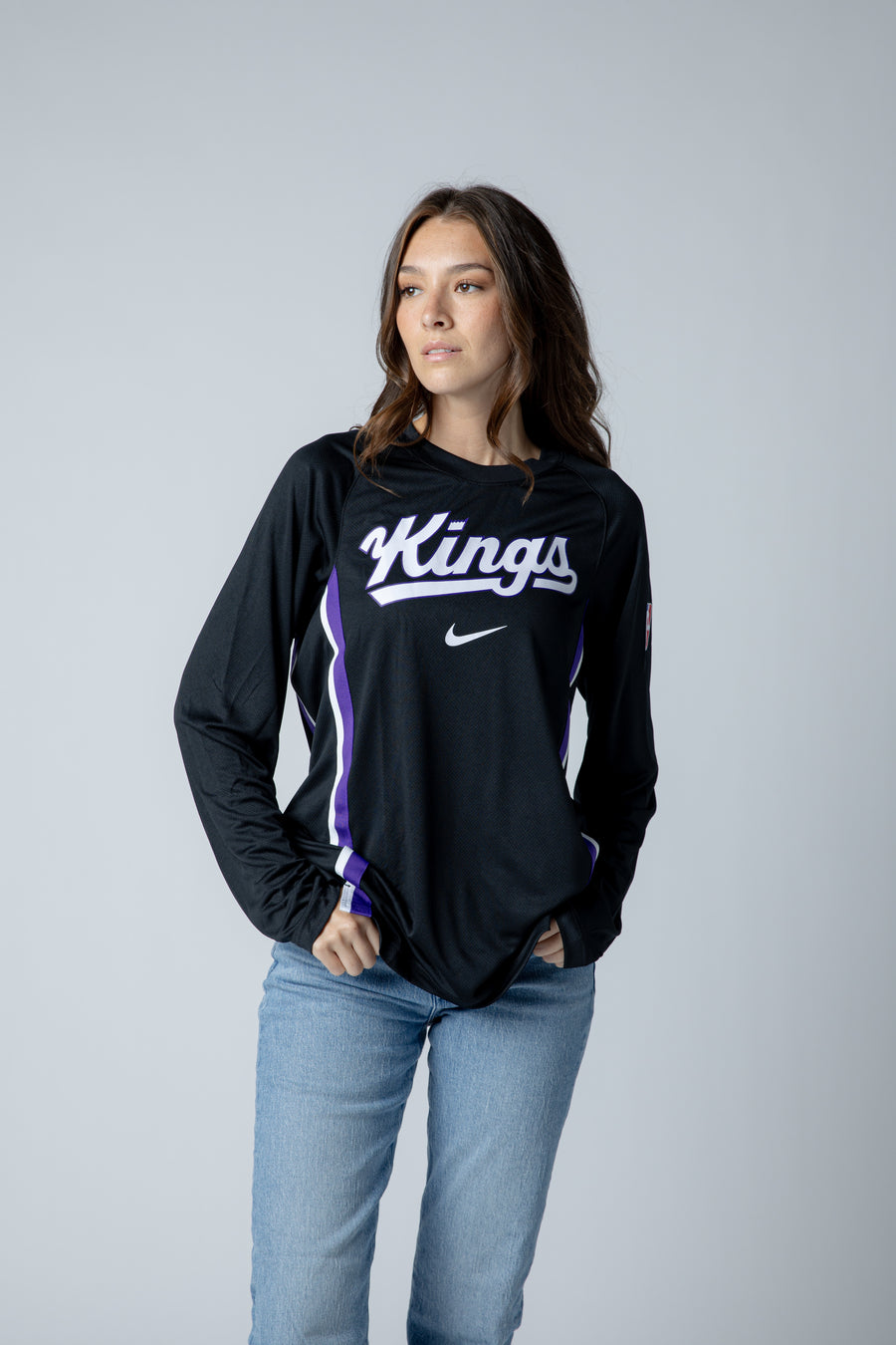 Elevate your game day wardrobe with the 2025-26 Long Sleeve Game Top. Featuring the iconic Kings script and bold purple and white stripes down the side, this top blends team pride with a sleek, athletic style.