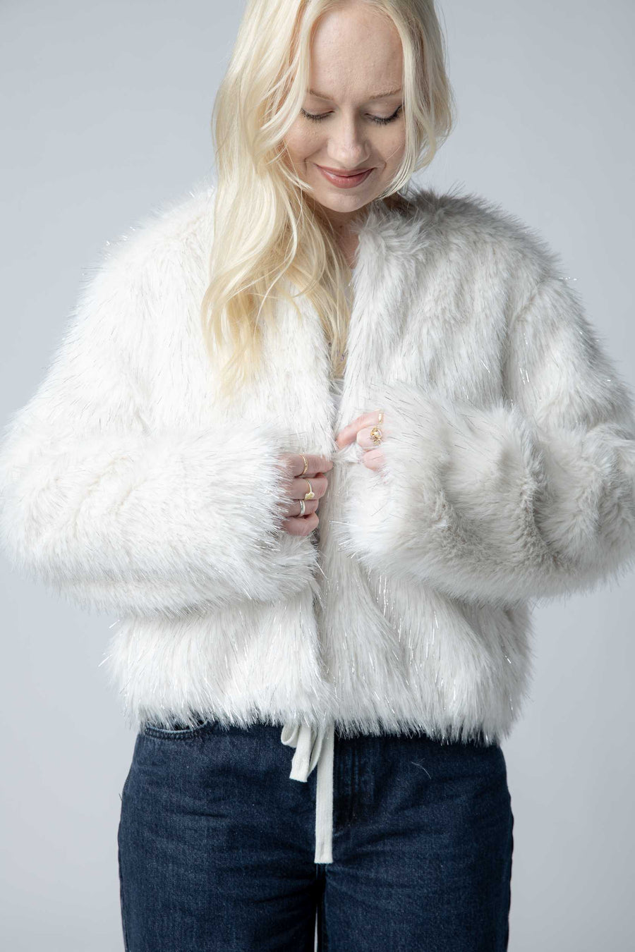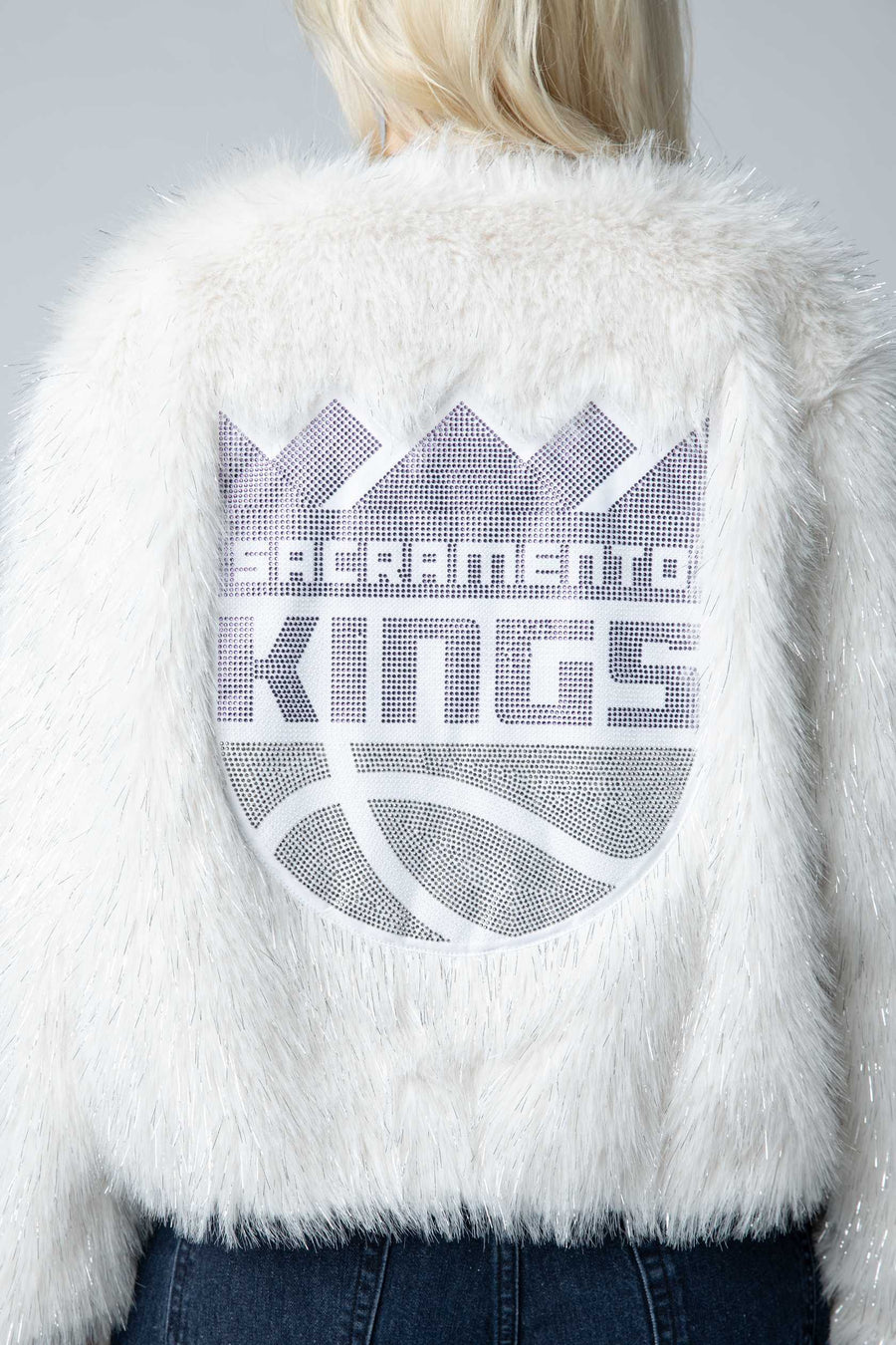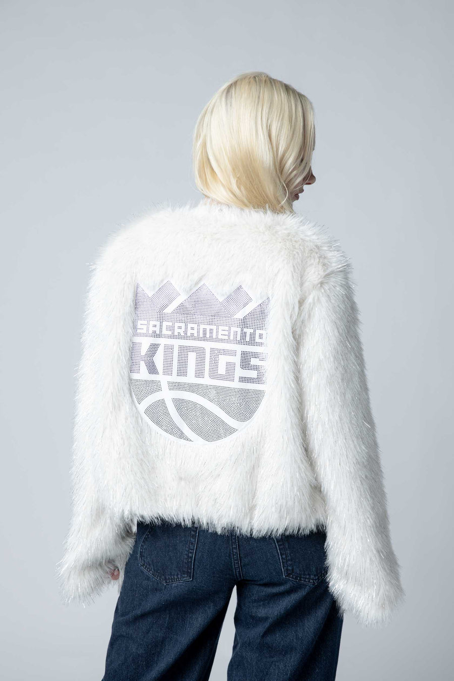 Elevate your Kings pride with this luxurious faux fur jacket featuring the iconic primary logo prominently displayed on the back. Crafted from premium white faux fur, this statement piece combines comfort with bold team spirit. Perfect for game days, casual outings, or showing your loyalty in style. The soft, plush material keeps you cozy while the striking back logo ensures you're representing the Sacramento Kings wherever you go. Make a fashion statement that turns heads and celebrates your team allegiance.