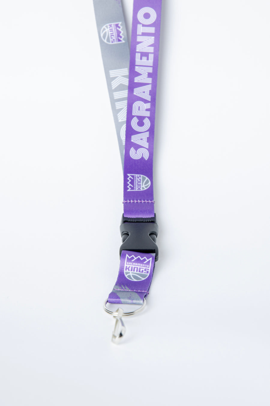Kings Crossfade Lanyard Keep your essentials secure with this premium lanyard featuring the iconic Sacramento Kings primary logo. The striking grey and purple colorway captures the team's signature aesthetic, making it perfect for ID badges, keys, or credentials at games, events, or everyday wear. Durable construction ensures reliable performance, while the bold Kings branding lets your team pride show wherever you go.