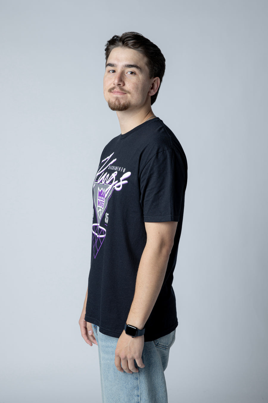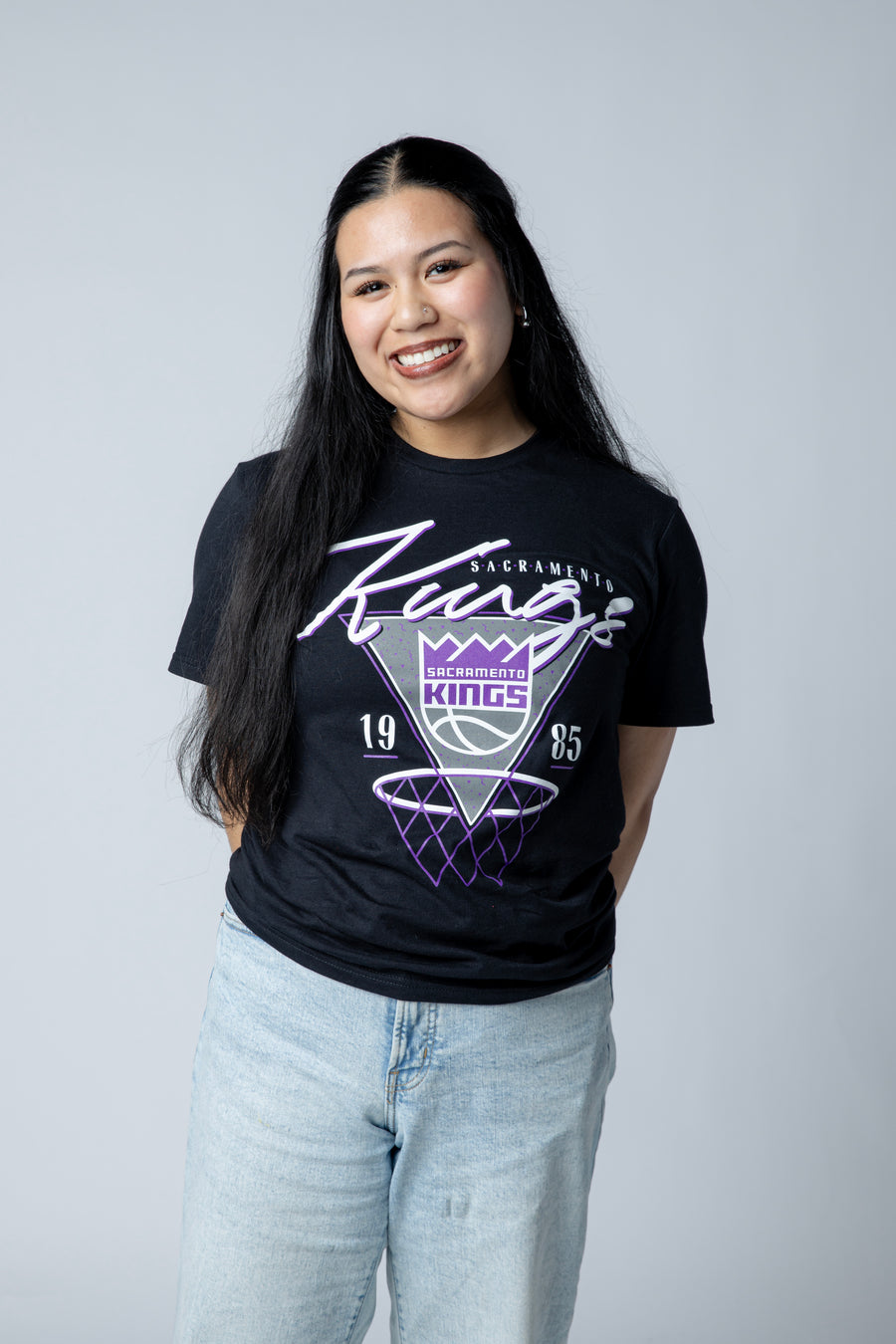 Rock your Kings pride with this vintage-inspired hoop tee featuring the iconic primary logo and "Kings" rendered in elegant cursive script. The retro aesthetic captures classic basketball style while the quality construction ensures comfort for game day or everyday wear. Perfect for loyal fans who want timeless team spirit with a nostalgic edge.