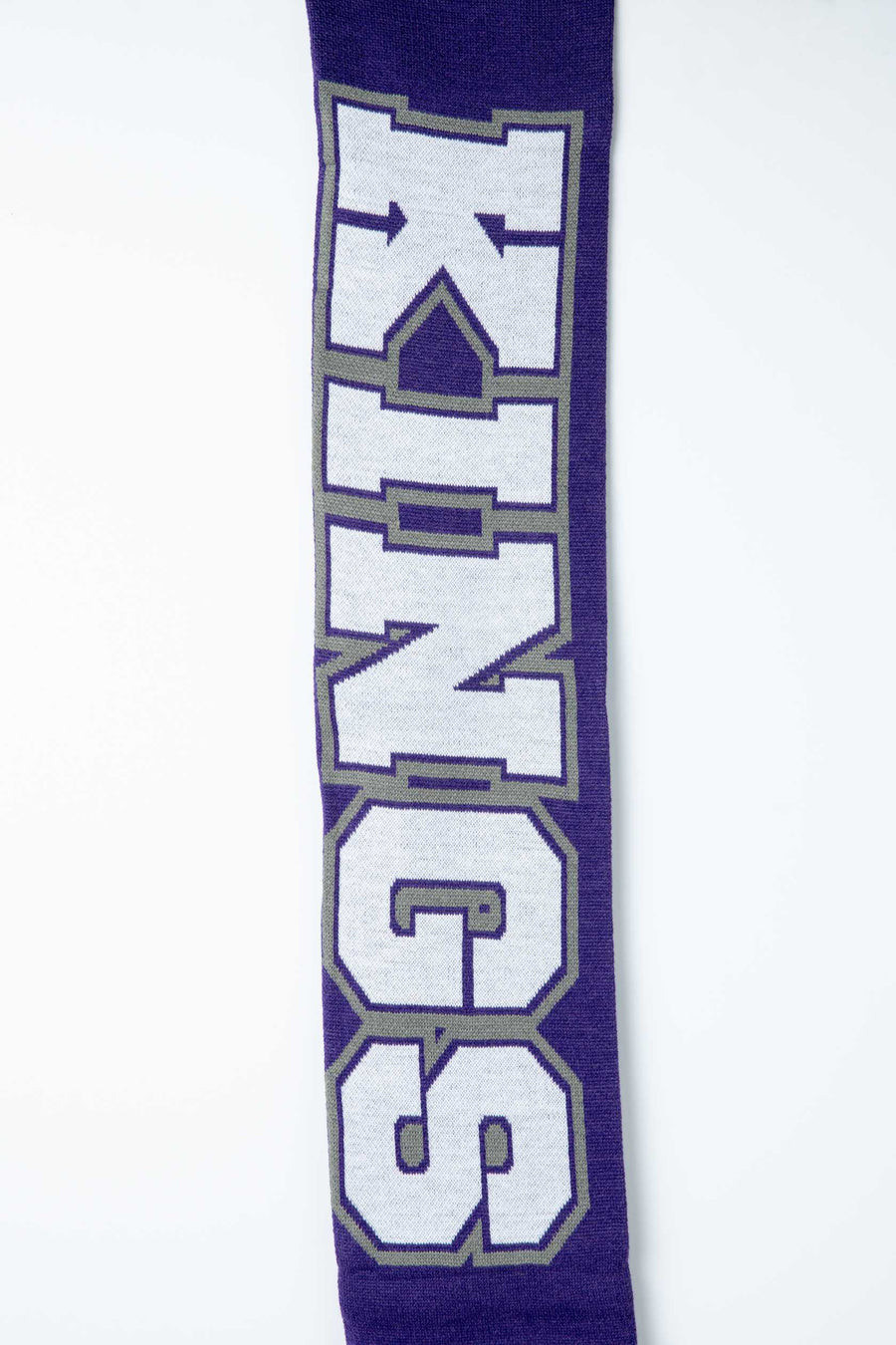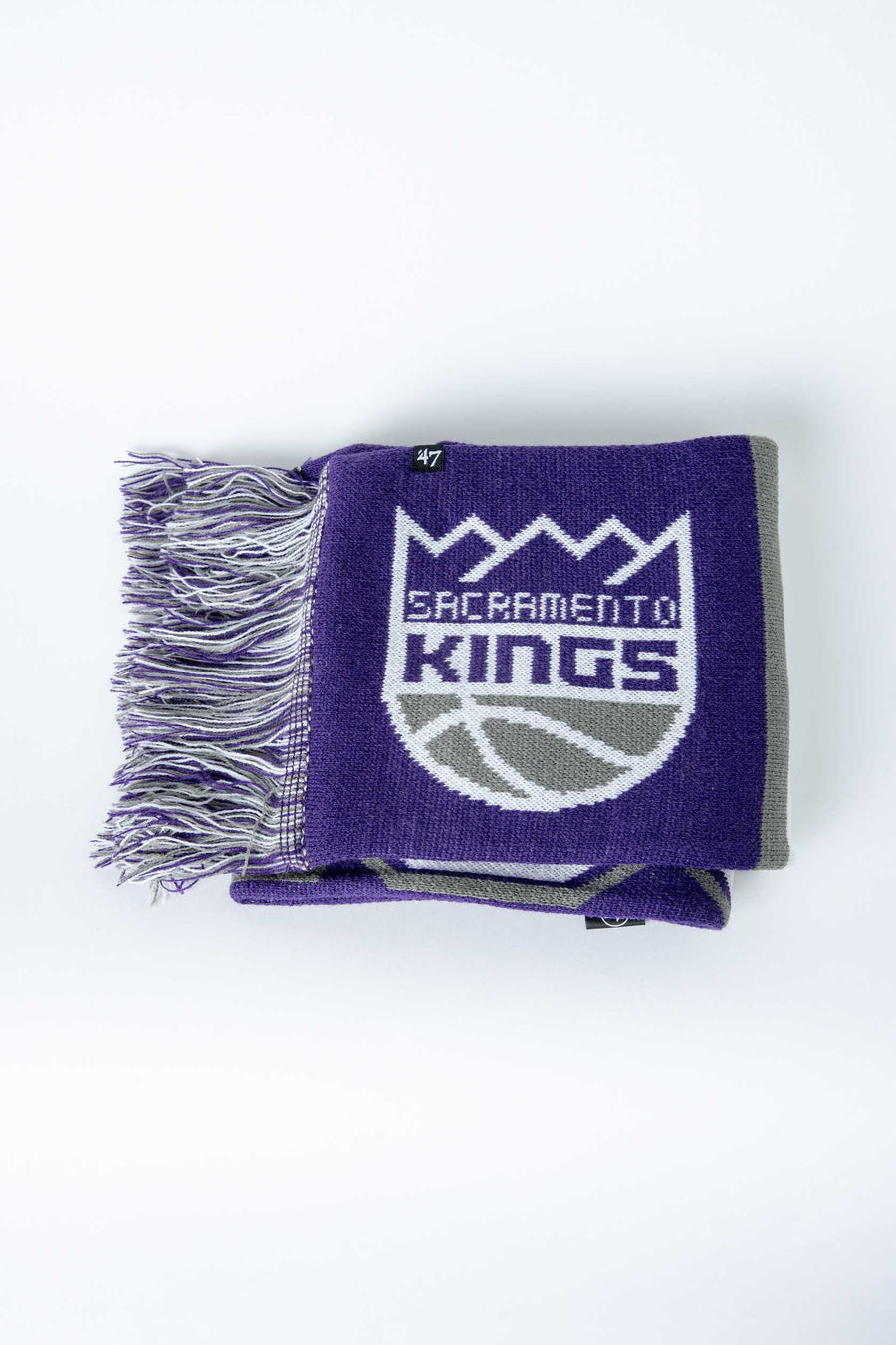 Wrap yourself in Kings pride with this striking scarf featuring the iconic primary team logo prominently displayed. The rich purple and white colorway captures the essence of Sacramento basketball, while crisp white and grey stripes at each end add sophisticated detail. Perfect for game days, casual outings, or showing your loyalty year-round, this versatile accessory keeps you comfortable while making a bold statement. Whether you're cheering courtside or out and about, this Kings scarf is an essential addition to any fan's collection.