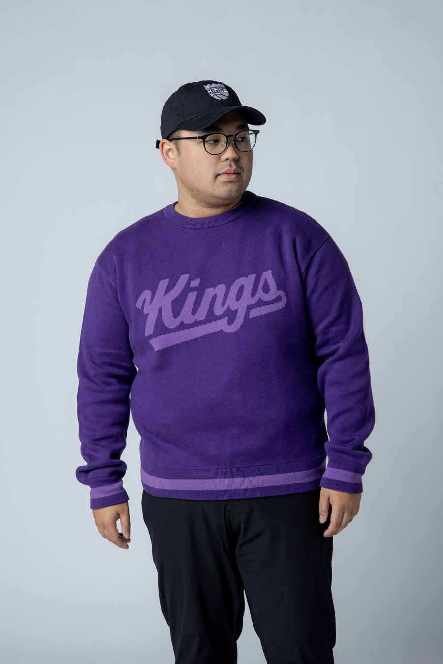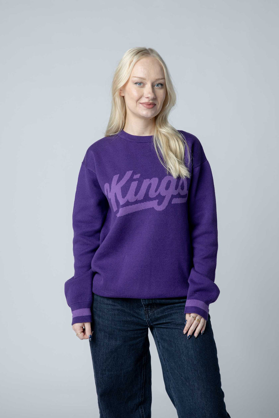 Kings Tonal Sweater in Light the Beam purple delivers understated team pride with a refined aesthetic. Featuring the iconic Kings script font across the chest, this piece balances premium comfort with subtle style. Lighter purple stripes accent the cuff and waistband, adding dimension without overwhelming the clean tonal design. Perfect for game days or everyday wear, it's built for fans who appreciate quality craftsmanship and timeless team loyalty.