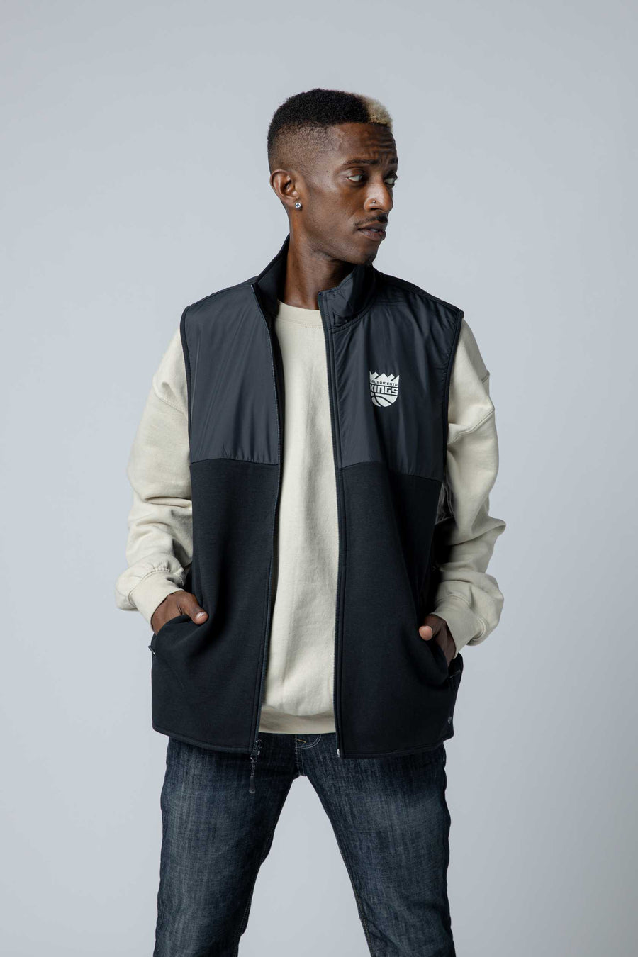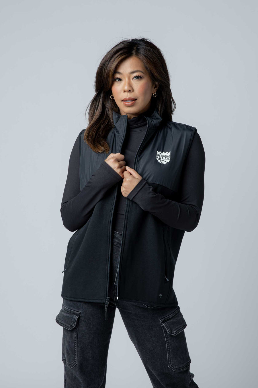 Elevate your Kings spirit with the Primary Forward Vest from 47 Brand. This striking two-tone design features a lighter black on top transitioning to a deeper black below, creating a bold visual impact. Emblazoned with the primary logo, this vest delivers authentic team pride with modern style. Perfect for game day or everyday wear, it's the essential piece for dedicated fans who want to showcase their loyalty in sophisticated fashion.