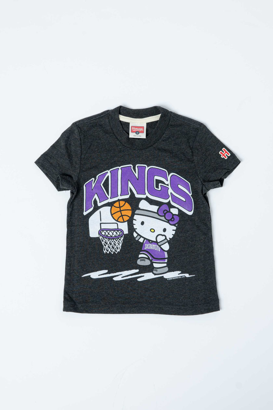Toddler Kings Hello Kitty T-Shirt Celebrate the perfect blend of iconic style and team spirit with this exclusive collaboration tee. Featuring a vibrant graphic showcasing the Sacramento Kings logo arced across the chest with Hello Kitty suited up in Kings gear, ready to take the shot. This playful design brings together beloved characters and basketball pride in one wearable statement. Perfect for young fans who love both the Kings and timeless charm, this tee delivers comfort and personality in every wear.